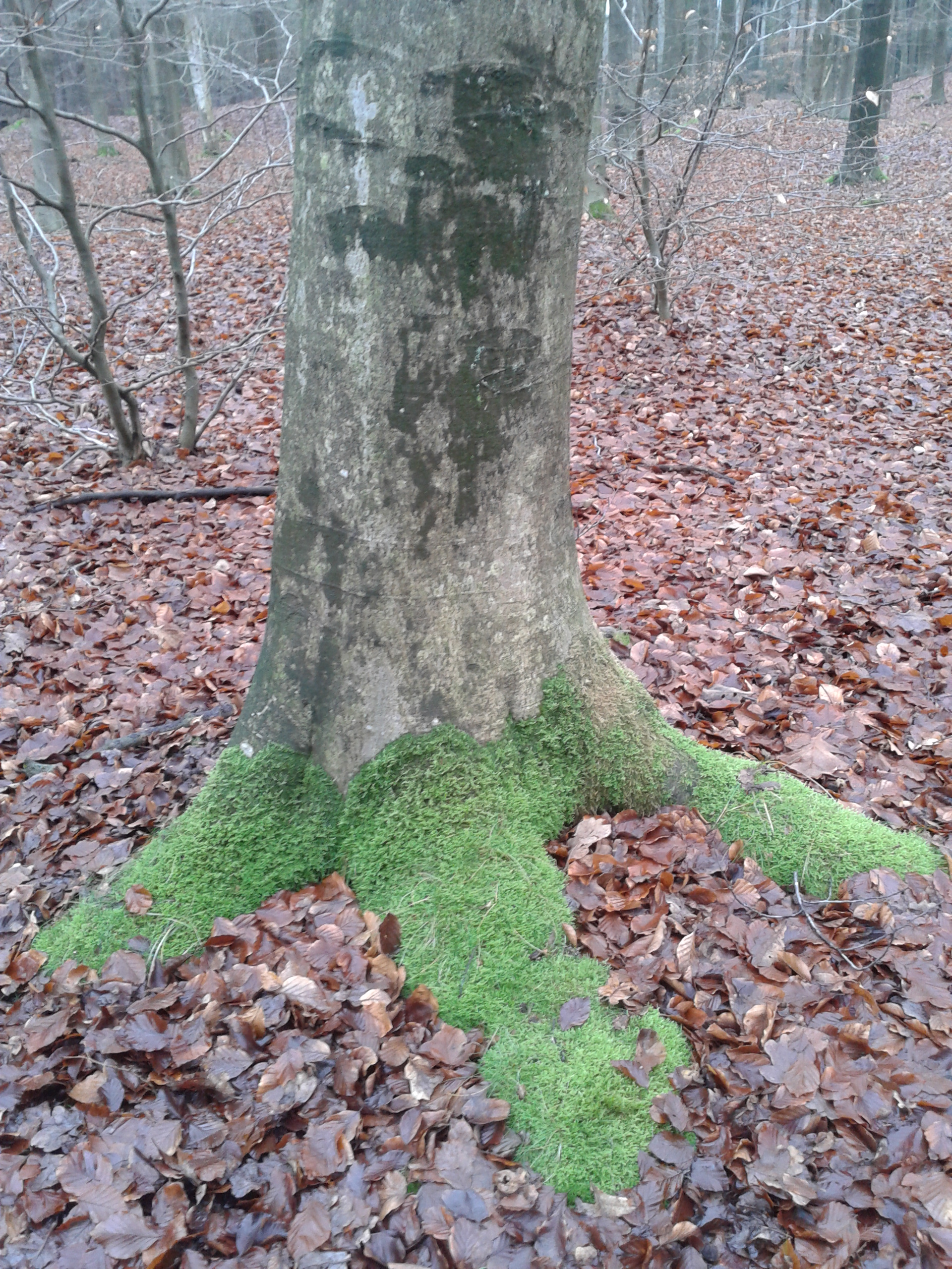 Waarom draagt het drietenige monster groene sloffen? Om niet op te vallen tussen de varens? Of in veld met kropsla? Ik weet ook niet wat het hier dan tussen de rottende bladeren zocht. Zijn mosgroene slof leek haast wel licht te geven. Sowieso steken de mossen nu heel sterk af tegen al die grauwbruine, rottende blaren. In eerste instantie dacht ik ook dat het om een boomvoet ging met mos op de wortels, maar schijn bedriegt! Het monster staat in het bos achter de radiotelescoop aan het Dwingelderveld. Als je er heel zachtjes langs sluipt, ziet ‘ie je misschien niet.